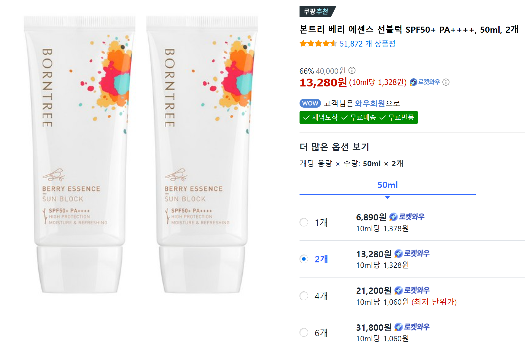 본트리 베리 에센스 선블럭 SPF50+ PA++++, 50ml 2개 리뷰