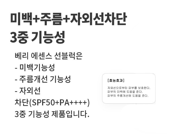 | 효과 | 자외선 차단 + 보습 + 진정 + 자연 톤업 |