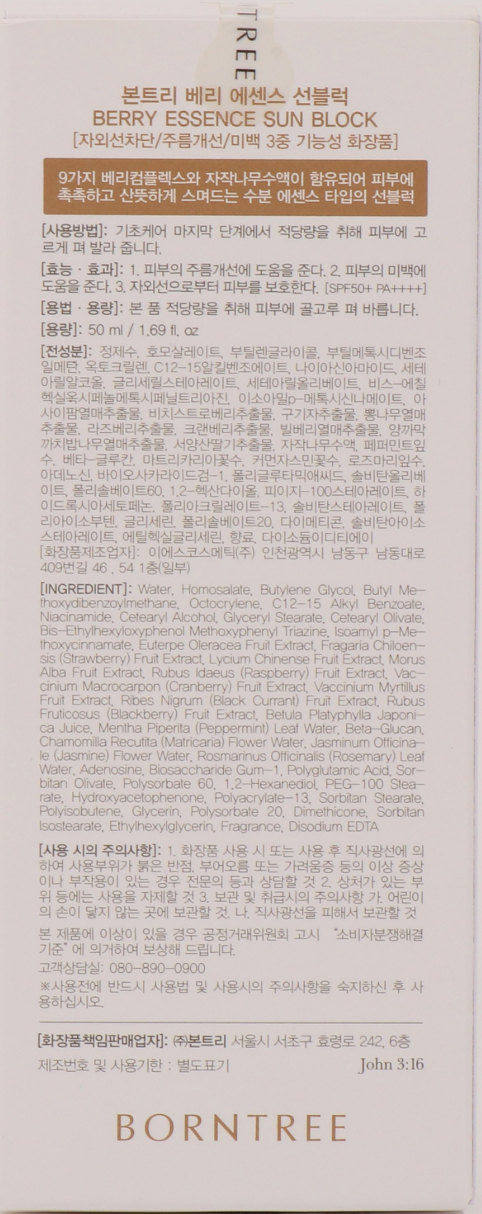 바로 **본트리 베리 에센스 선블럭 SPF50+ PA++++**입니다.