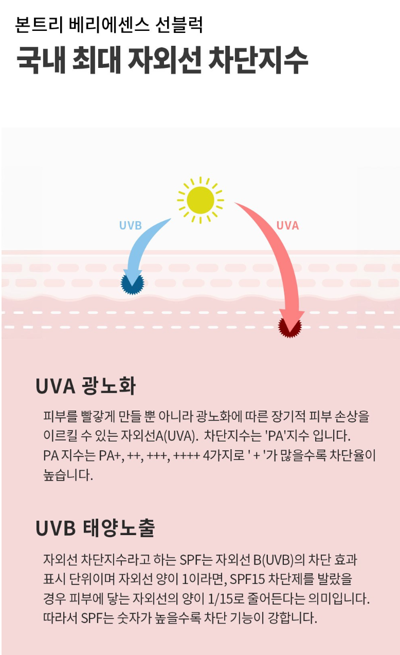 ✔ PA 등급(UVA 차단 지표)을 꼭 보셔야 해요!