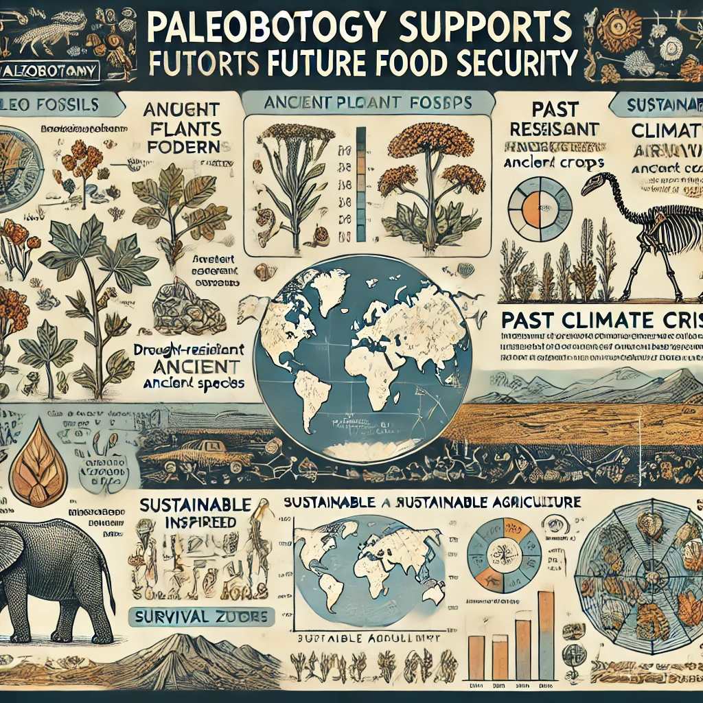- 식량 작물의 야생 조상 분석: 밀, 보리, 쌀 등의 기원 식물 화석을 통해 유전적 기초 복원 가능 - 도메스티케이션(길들이기) 과정의 고찰: 초기 작물화 이전 단계 식물의 생존 전략 이해 → 품종 다양성 확대 - 작물계통 유전학 보완: 화석기반 계통 트리를 통해 멸실된 유전형질 복원 시도